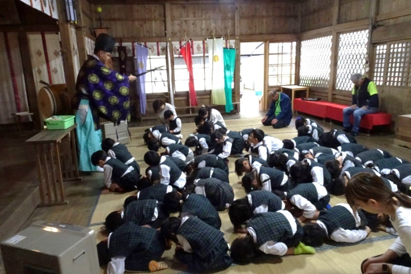 年中組さんが手作りの袋に入れた千歳飴をもって一宮神社に七五三参りに行ってきました。子ども達の大きく成長したことを感謝し、これからの将来の幸せと健康をお祈りしました。