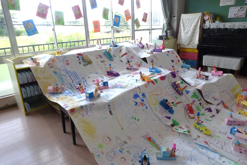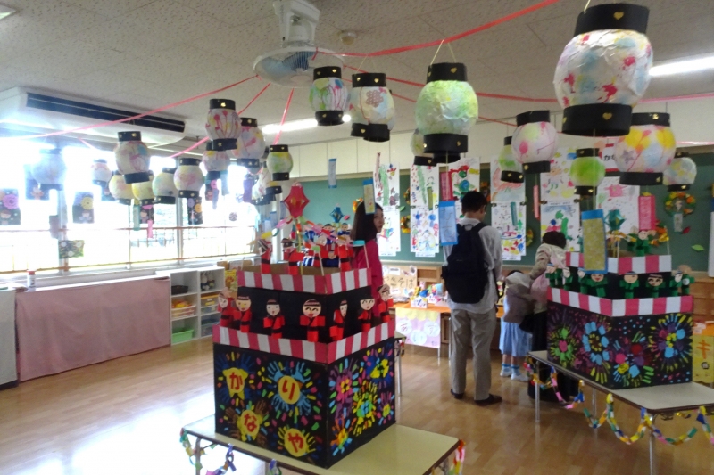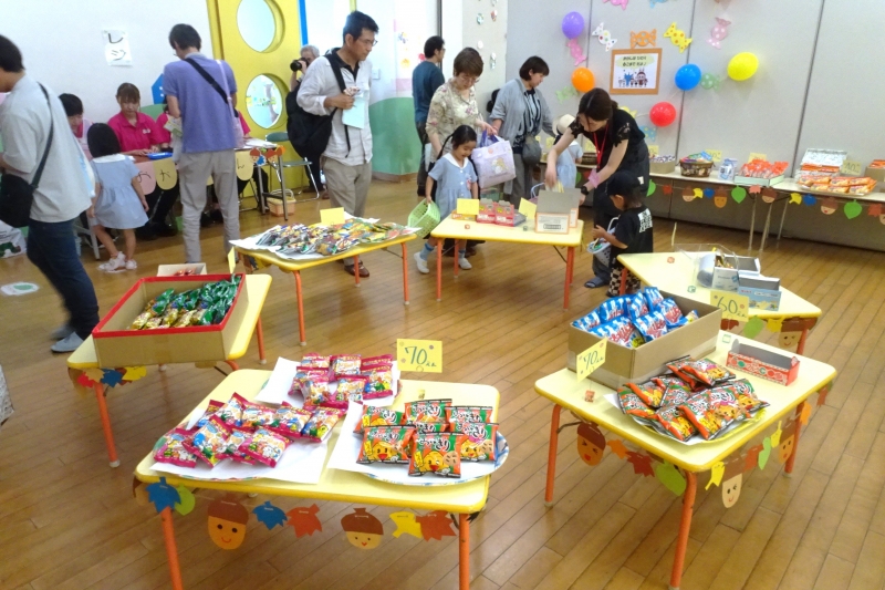 子ども達の作品をおうちの方と嬉しそうに園内を見て回ったり、遊びコーナーで楽しそうに遊ぶ子ども達とそれを見守るおうちの方々を見て、とても温かな気持ちになりました。今年は初の試みとしてキッチンカーさんを呼び、賑やかさを増すことができました。