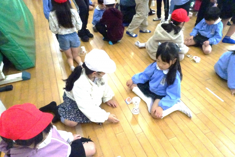 児童さん手作りのおもちゃで使い方を教わりながら遊んだり、じゃんけん列車をして、みんなで楽しく過ごしました。