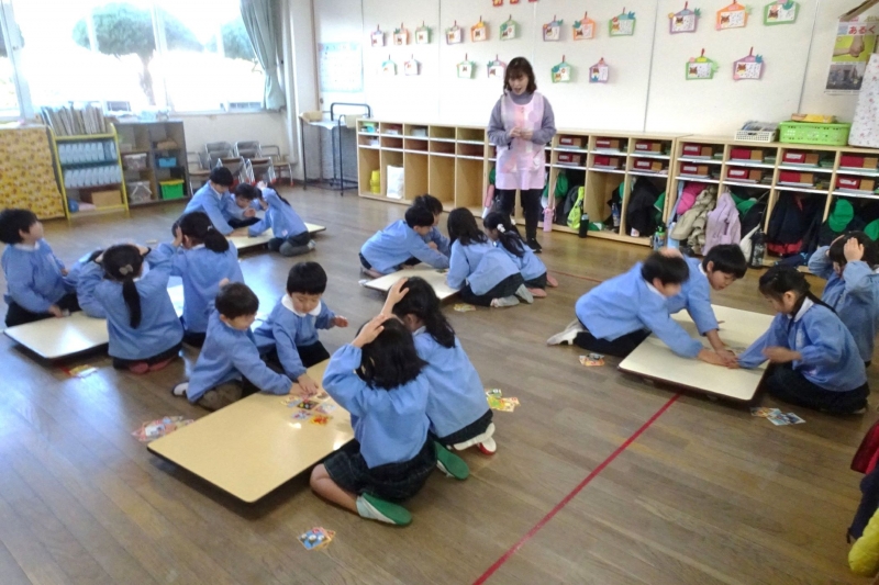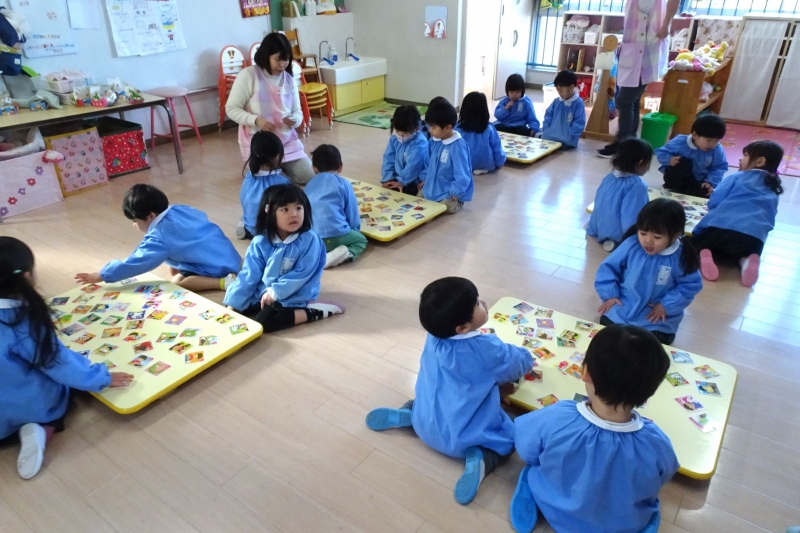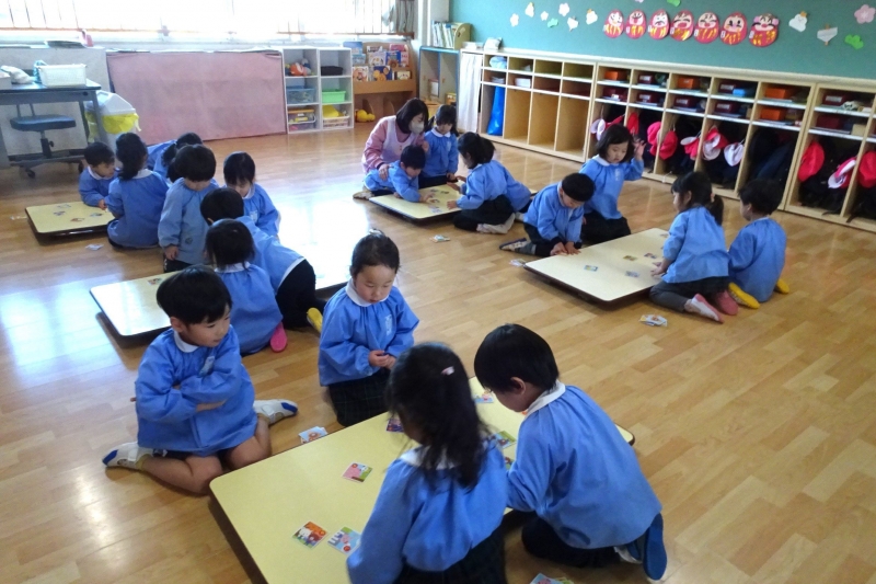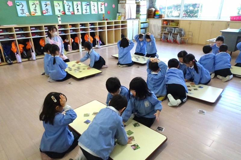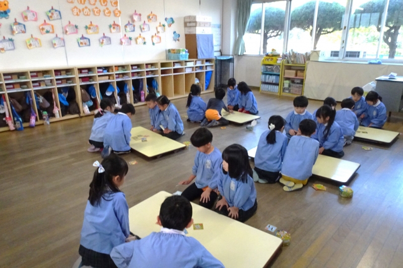 新学期に入り初めての園行事、カルタ大会が行われました。それぞれのクラスでグループに分かれて競い合いました。どのクラスも気合十分!読み札を集中して聞く姿はとてもかっこよかったです。遊びを通してひらがなを覚えたり、たくさんのきれいな言葉に触れてもらいたいと願っています。